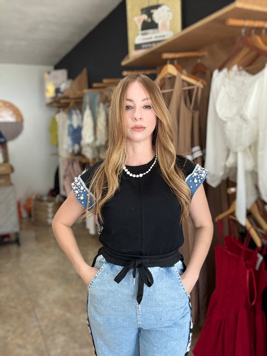 AgotadoBlack & Denim Top
