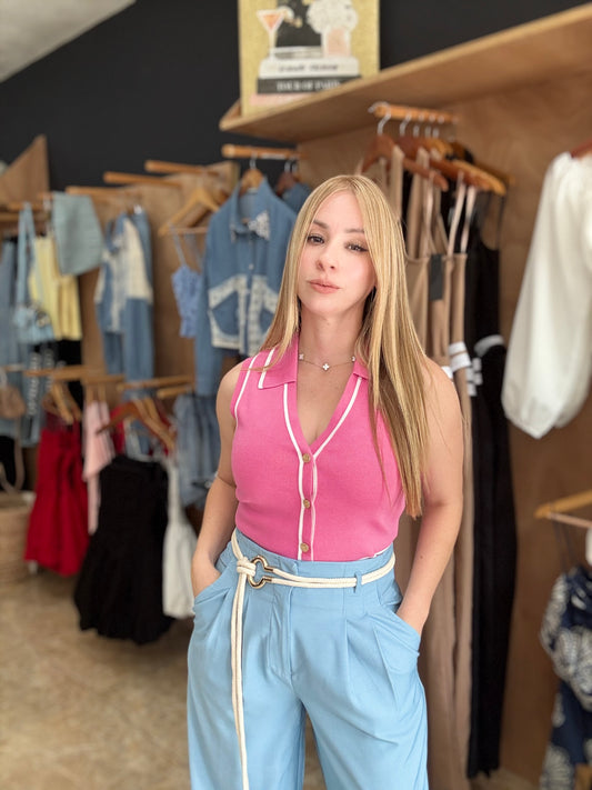 V Neck Pink Top